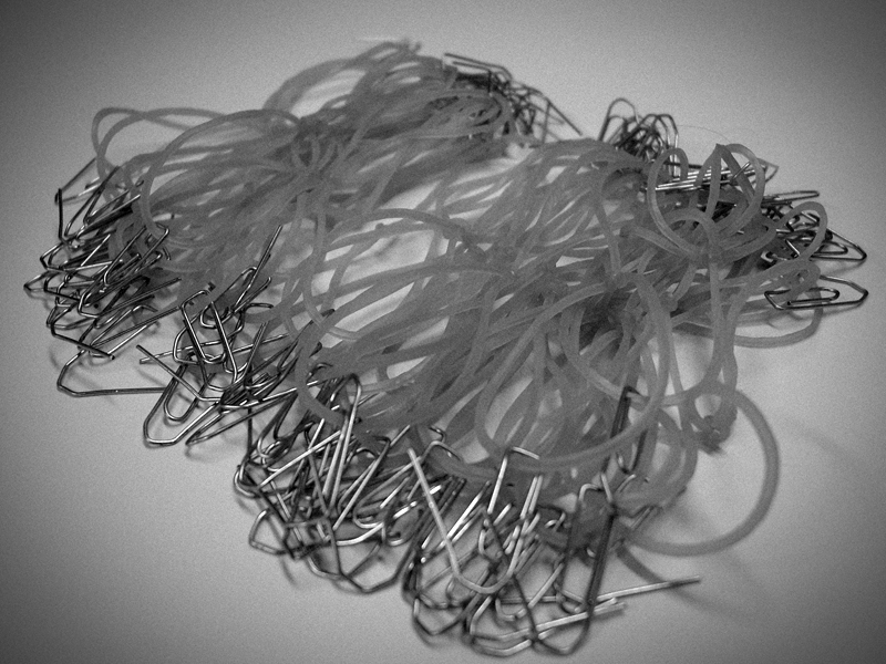 Le culte du corps et la culture du paraitre sont tant une religion aux États-Unis qu’ il est bon parfois de s’en moquer. Des dents toujours plus blanches pour des sourires tous identiques, jusqu’à quel seuil d’uniformisation de la beauté irons-nous ? À l’heure du tout bio, on nous vend un sourire éclatant naturel à grand coup de péroxyde de carbamide dans des bars à sourire improvisés. Autant d’actes anti-naturels et onéreux alors que l’artiste propose une méthode 100% naturelle et gratuite ! Une paire de trombones tordus au coins des lèvres tendus par un élastique derrière la tête : La beauté se démocratise…