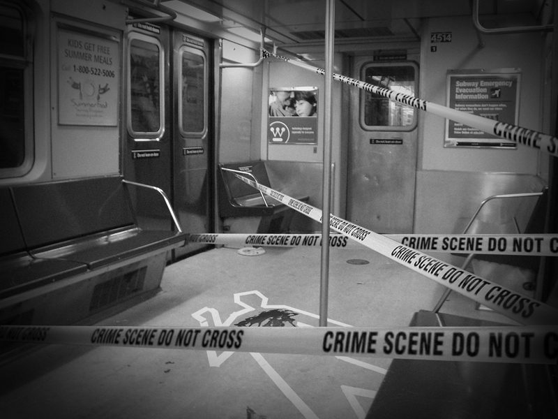 Subway Diversion Project – Installation sauvage in situ – Banderolle vinyl, gaffeur, encre rouge – New York Subway – 2010