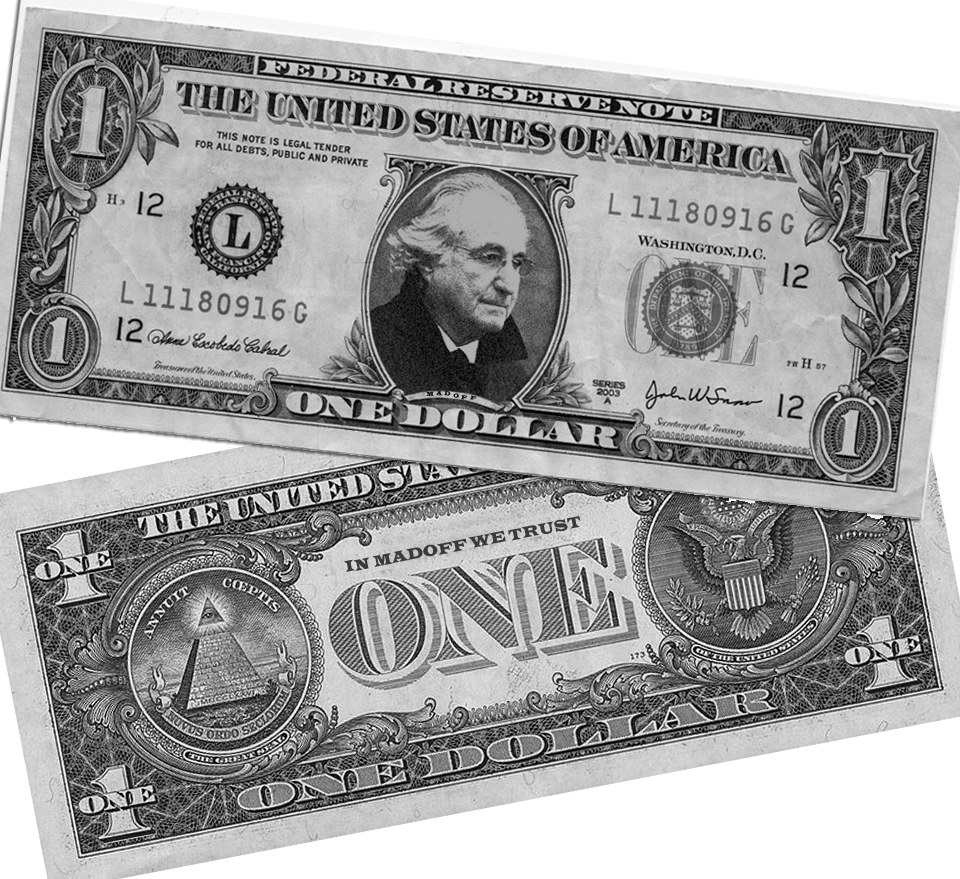 10 000 billets de 1 dollar à l’effigie de Bernard Madoff lancés du haut d’un immeuble :