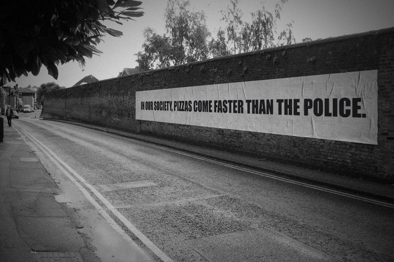 En détournant les enseignes publicitaires, en «hackant» les panneaux informatifs électroniques ou en s’appropriant les panneaux d’affichage, Martin Parker utilise des mediums résolument contemporains pour traiter des sujets d’actualité.