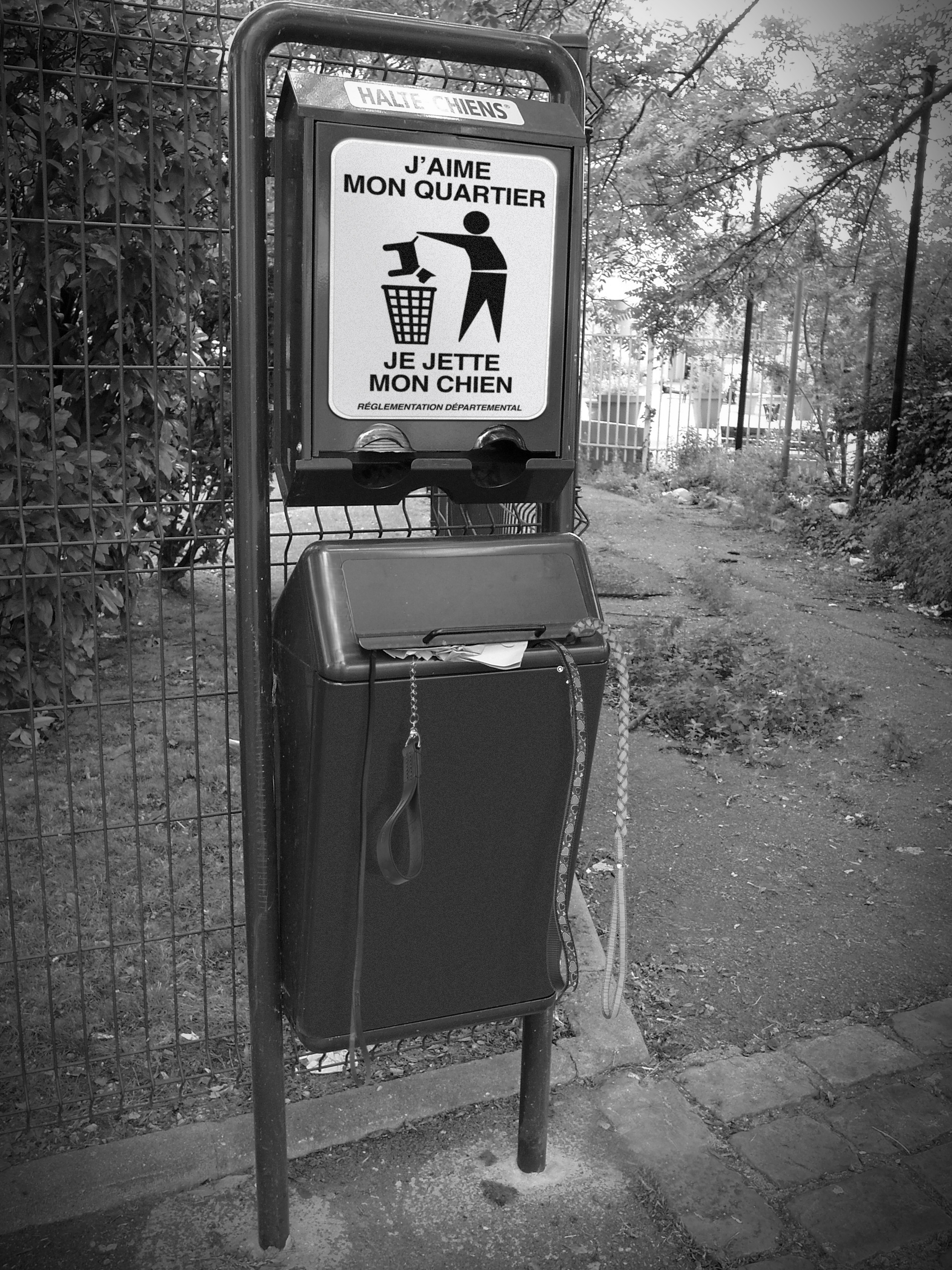 Common Places Project – Détournement de mobilier urbain – Sticker + laisses de chien – Vitry – 2013