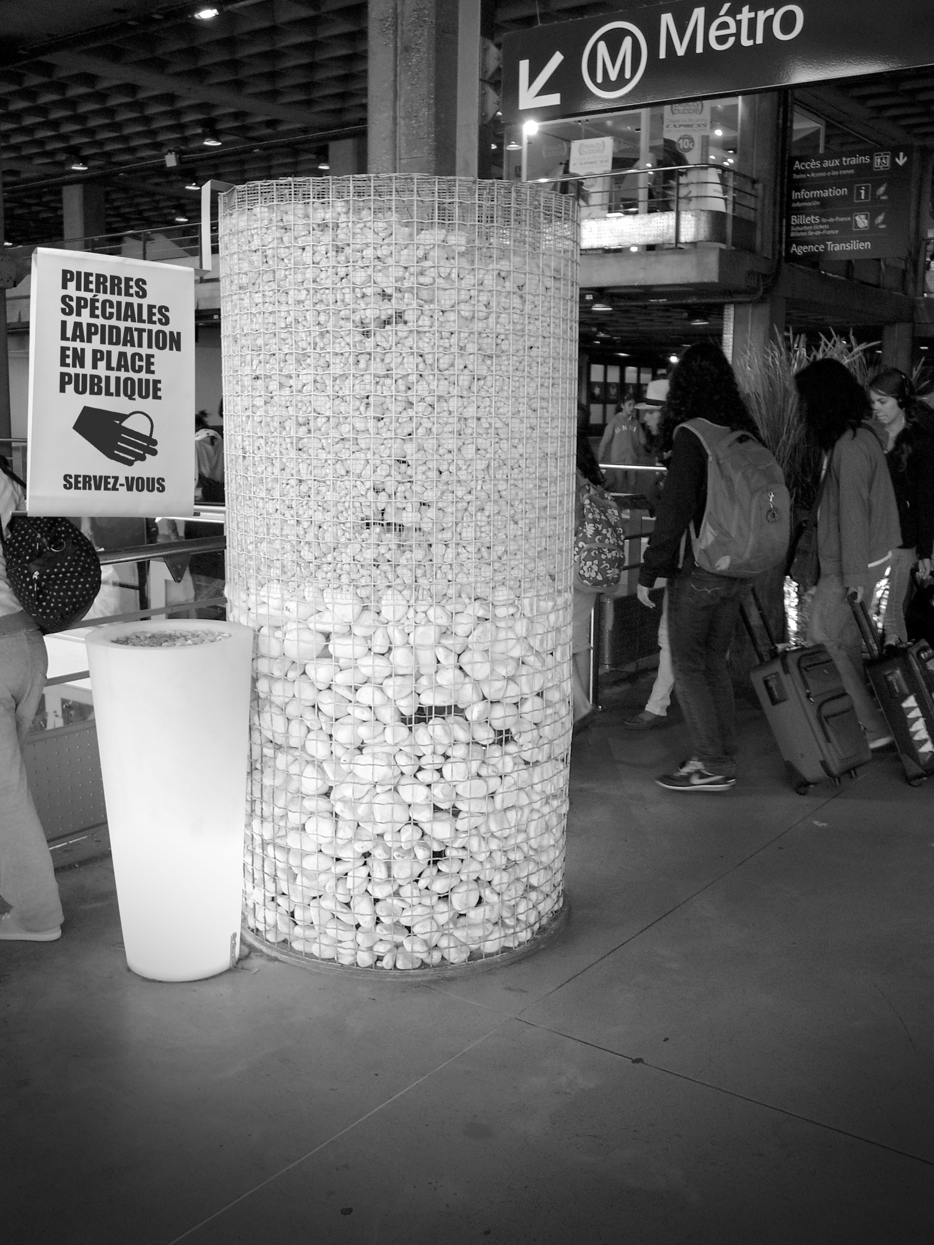 Durée de vie de l’installation : quelques heures dans les gares, une journée maximum dans certaines stations de métro. Les milices Selecta sont encore plus efficace que les « Pac-man » de la propreté de Paris…